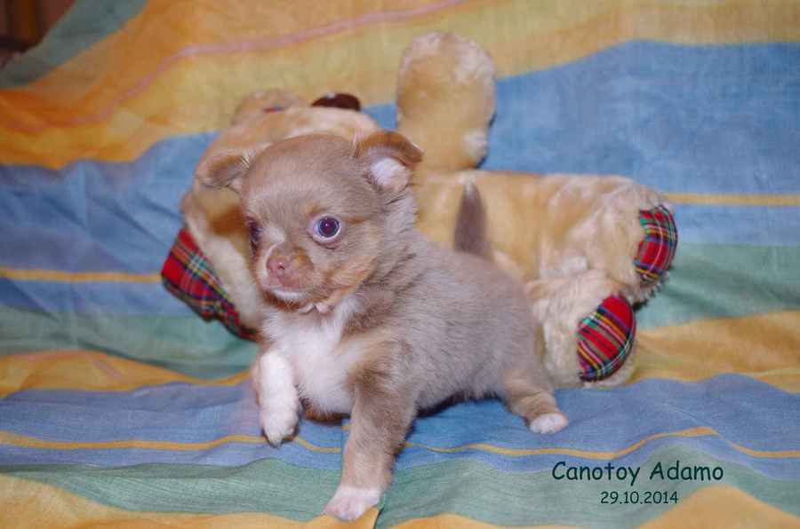 Canotoy Adamo unserer kleiner Chihuahua Rüde in der Farbe lilac tan-white wird zukünftig bei Katharina leben, aber unsere Zucht weiterhin bereichern.